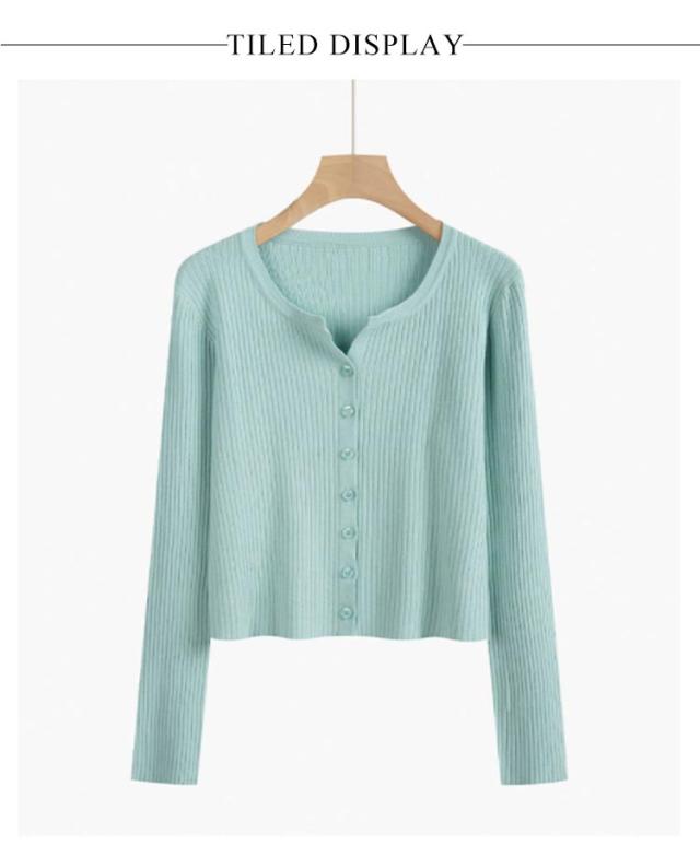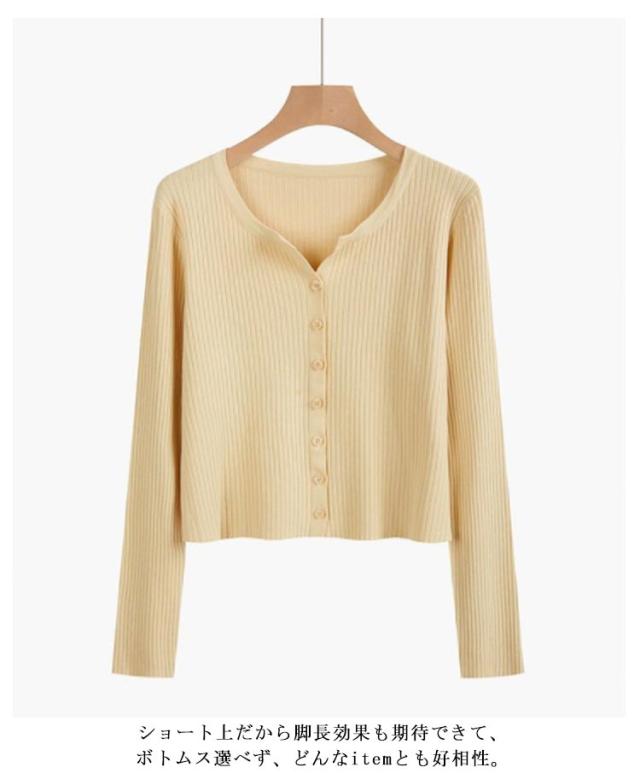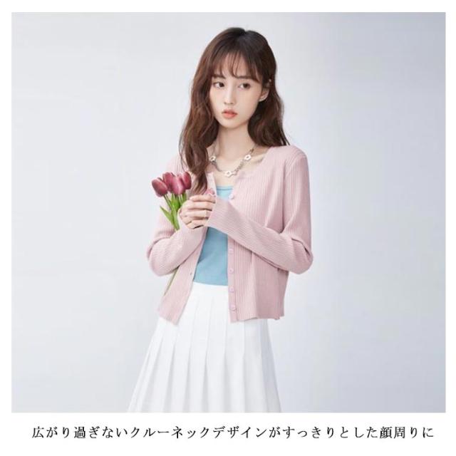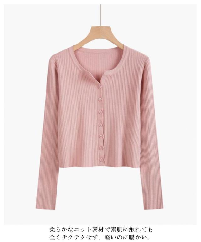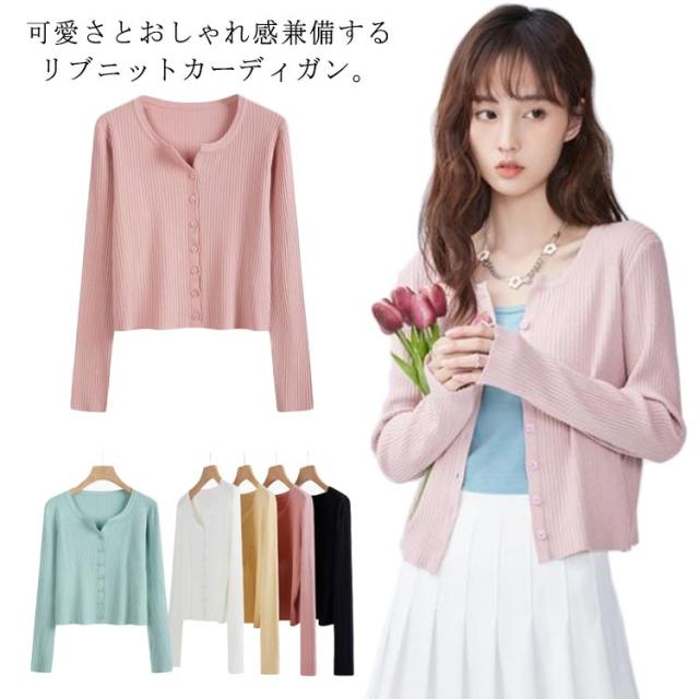 全5色×5サイズ!リブニット ショート丈 カーディガン 春服 リブカーディガン 丸首 おしゃれ 無地カーディガン リブニット 羽織り 送料無料 ライトアウター オフィス 長袖 ニットカーディガン 秋服 シンプル クルーネック