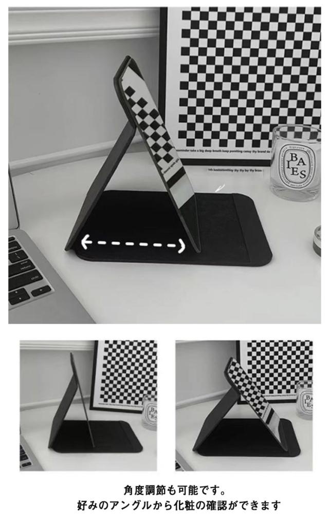 | インテリアとしても持ち運び用としてもかわいい折りたたみミラーです 滑り止め加工を施されたPUレザーを採用しているので角度調整が自由に行えます 軽量・コンパクト&シンプルで高級感のあるデザインなのでどのようなファッションにも合わせやすく持ち運びにも 折り畳めるから収納時かさばらない 汚れ・衝撃から保護 角度調節も可能です。 好みのアングルから化粧の確認ができます お部屋の雰囲気にあわせた種類をお選びいただけます | |