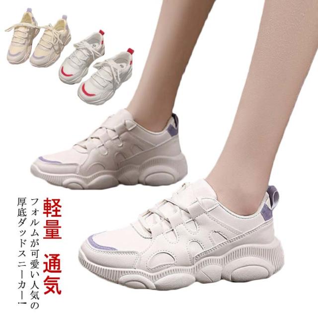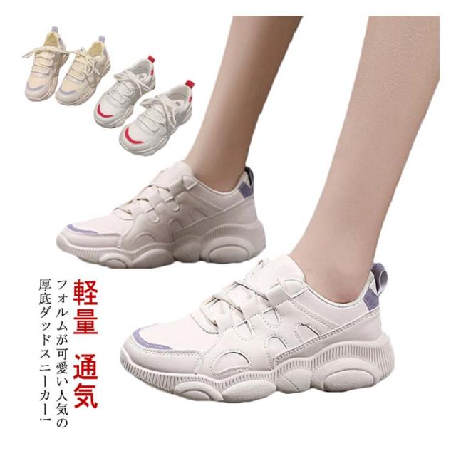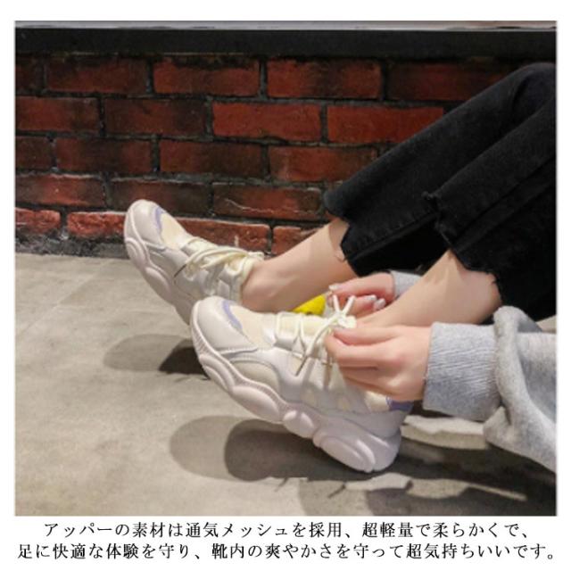 スニーカー 人気 痛くない 厚底 運動靴 ダッドスニーカー 美脚 通学 シンプル 歩きやすい レディース ランニング 韓国 レースアップ メッシュ 軽量 カジュアル 身長アップ 疲れない 通気 軽い ウォーキングシューズ おしゃれ
