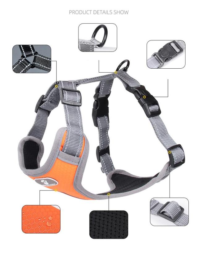 小型犬 送料無料 メッシュ素材 ハーネス ハニカム柄 中型犬 大型犬 リフレクター付き 小型犬 安全 オックスフォード生地 お散歩 通気性 ドッグウェア サイズ調節可 ペット用品