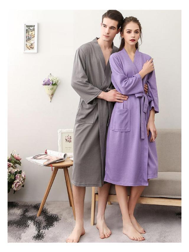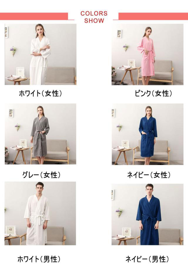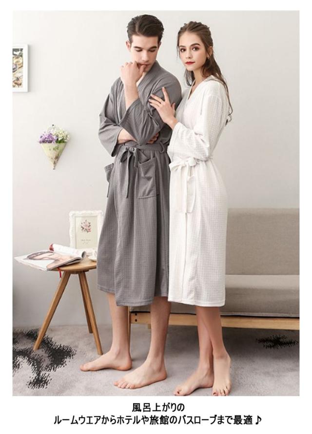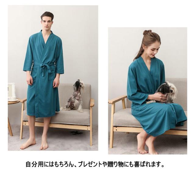バスローブ 通気 秋 レディース 部屋着 薄手 夏 バスローブ 吸水速乾 七分袖 寝間着 ワッフル ルームウエア メンズ 寝巻き パジャマ 風呂上がり 男女兼用 ゆったり ナイトウエア 無地 膝丈 大きいサイズ ペア 旅館 温泉 ホテル 春 ナイトガウン