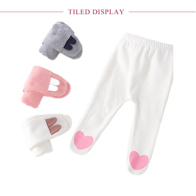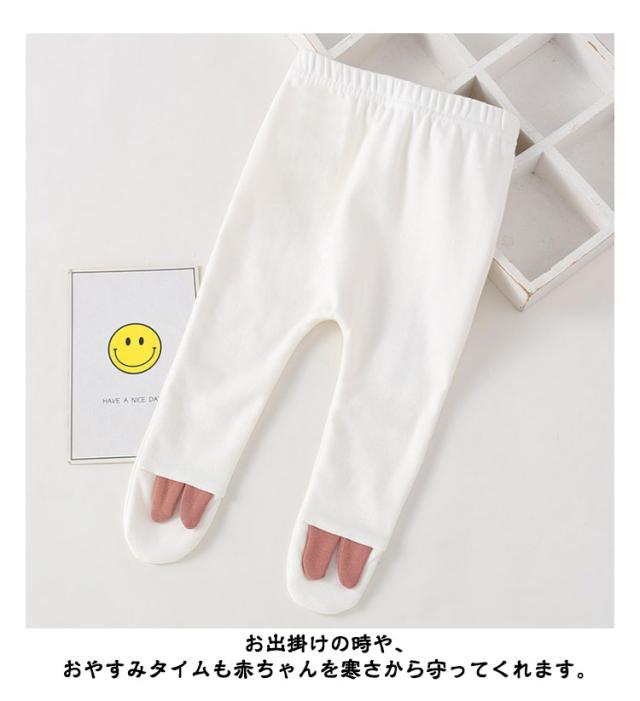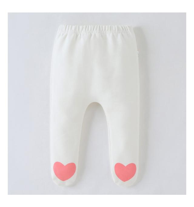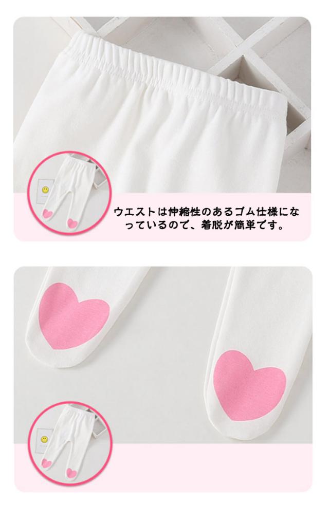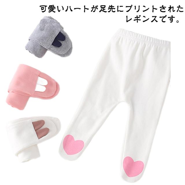 | 可愛いハートが足先にプリントされたレギンスです。 素材は肌に優しい綿素材。 足先まですっぽりと包み込んでくれ、防寒対策としても◎ お出掛けの時や、おやすみタイムも赤ちゃんを寒さから守ってくれます。 程よく厚みがあるので、ボトムス感覚で着用頂けそう。 ウエストは伸縮性のあるゴム仕様になっているので、着脱が簡単です。 | |