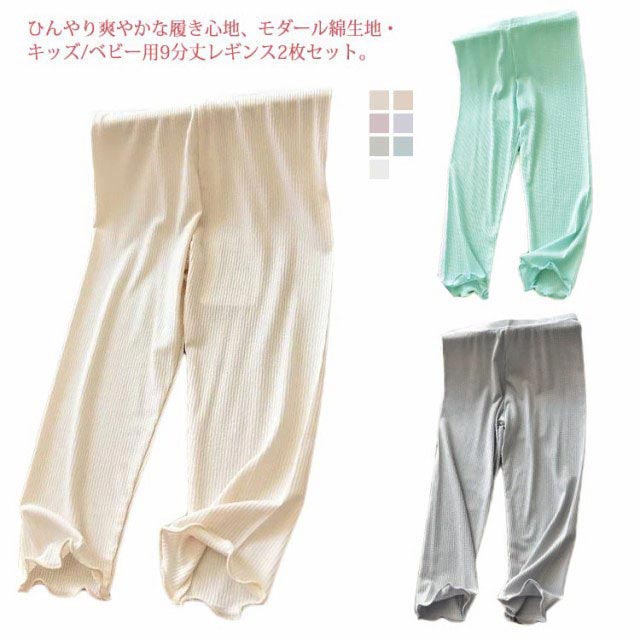 | ひんやり爽やかな履き心地、モダール綿生地・キッズ/ベビー用9分丈レギンス2枚セット。 薄手生地で、暑い季節におすすめのレギンスです。 さらっとなめらかな肌ざわりで、気持ちいい履き心地です。 接触冷感、吸汗速乾機能を備えています。 適度なストレッチがあり、何かと動き回る子供たちもストレスなく履けます。 デイリー使いはもちろん、スポーツにも使えます。 ベタつき防止のインナーとしてもおすすめです。 | |