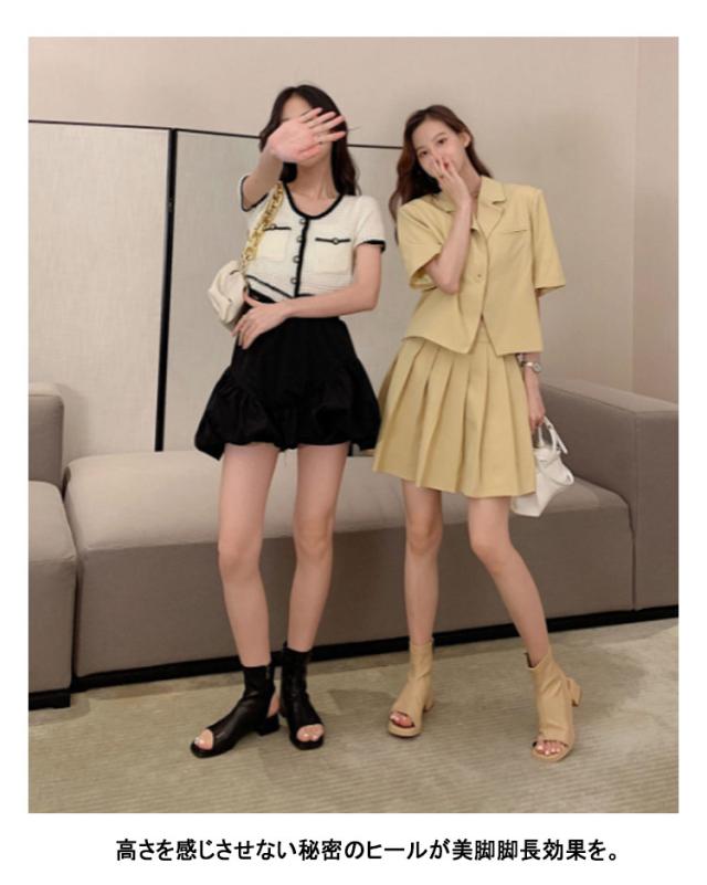 | 抜け感を意識したオープンデザインのブーツサンダルです。 ブーツ見えするデザインも、つま先が開いていて肌見え部分があるのでコーデに抜け感をプラス。 サイドファスナー付きで脱ぎ履きラクチン。 高さを感じさせない秘密のヒールが美脚脚長効果を。 足にぴったりとフィットしてくれるので、安定感があってどんなに歩いても◎ パンツからスカートまで幅広く合わせていただきます。 デニム合わせおしゃれでオススメのスタイルです。 | |