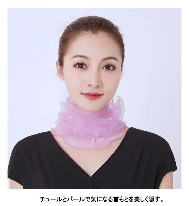 ネックカバー レディース チュール パール シワ隠し 日除け 日焼け対策 ネックウォーマー 日焼け防止 首元隠し全12色