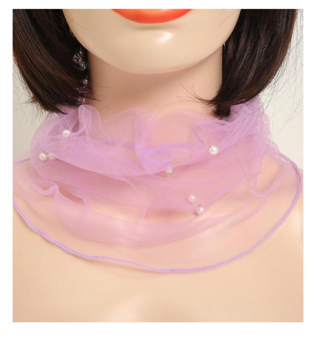 | シワ隠し・日焼け対策にも使えるネックカバー。 チュールとパールで気になる首もとを美しく隠す。 軽くてやわらかなチュール素材で、通気性が良く、快適なつけ心地です。 ストレッチの効いたチュール素材だから着脱も楽々です。 | |