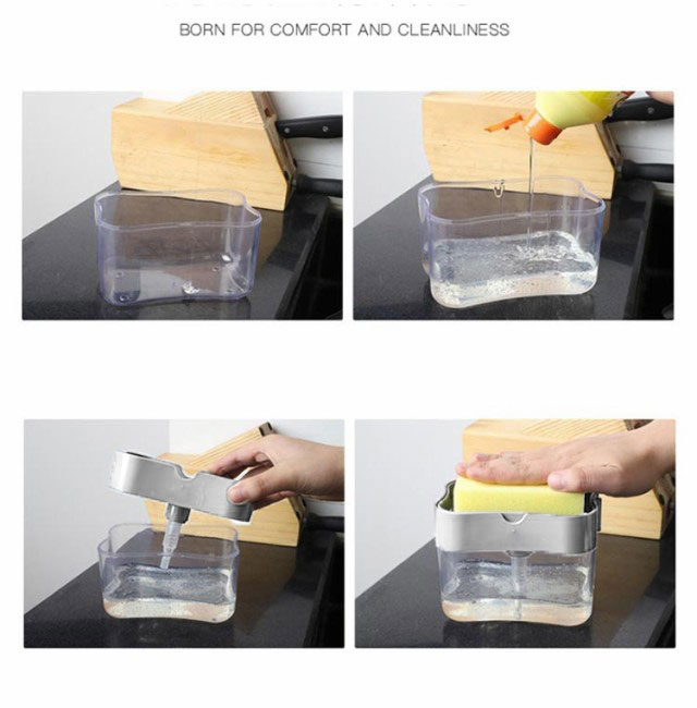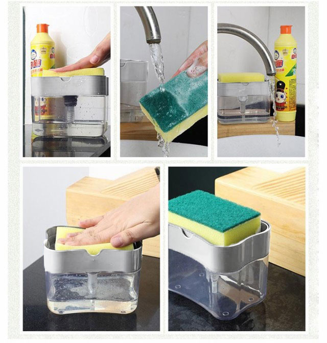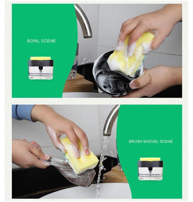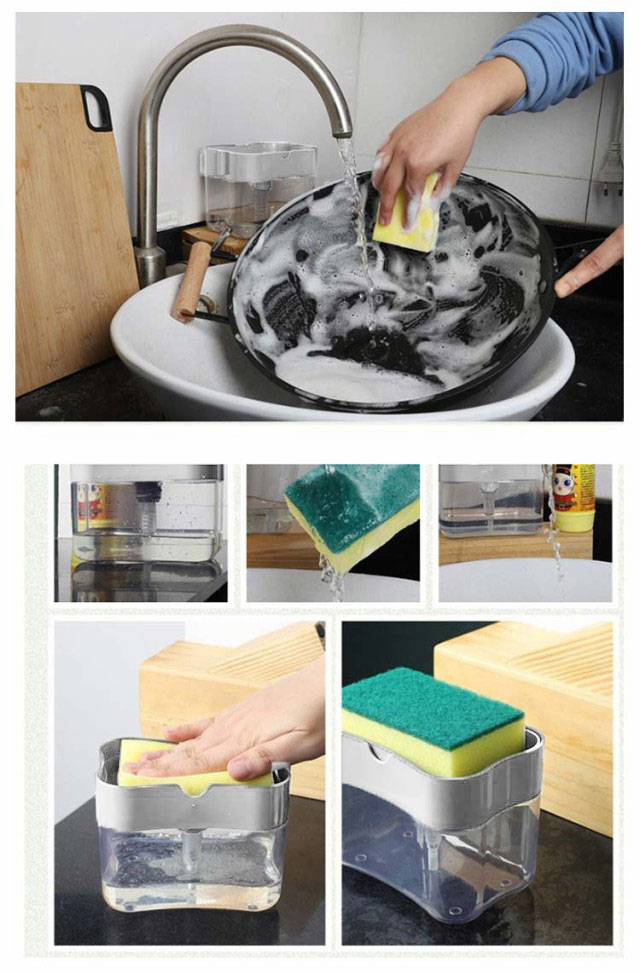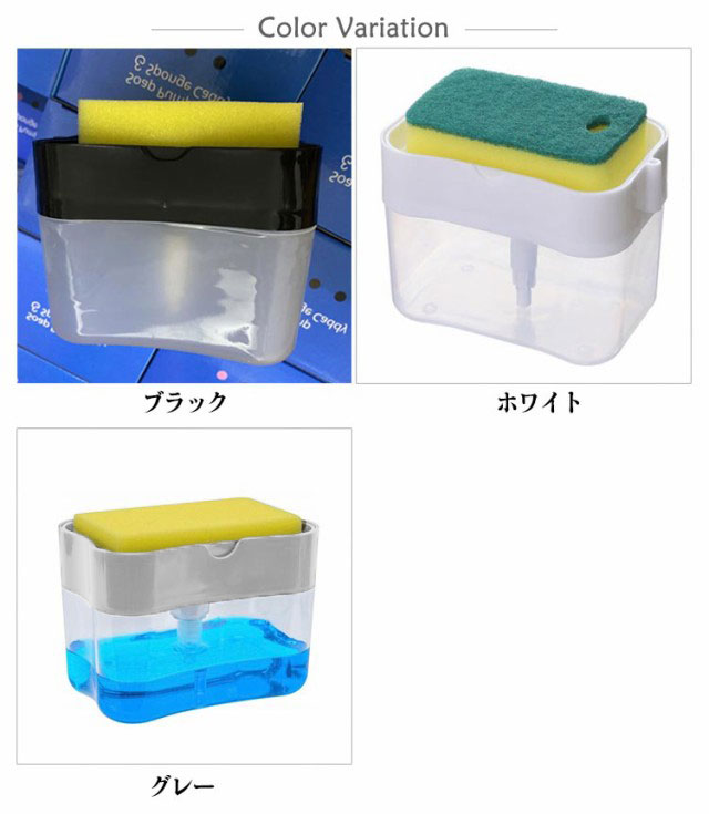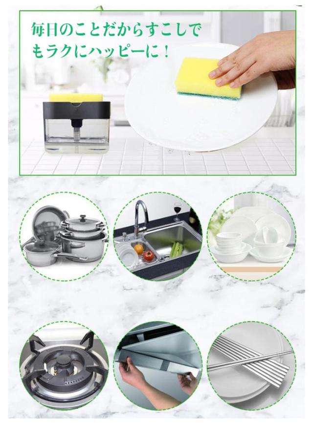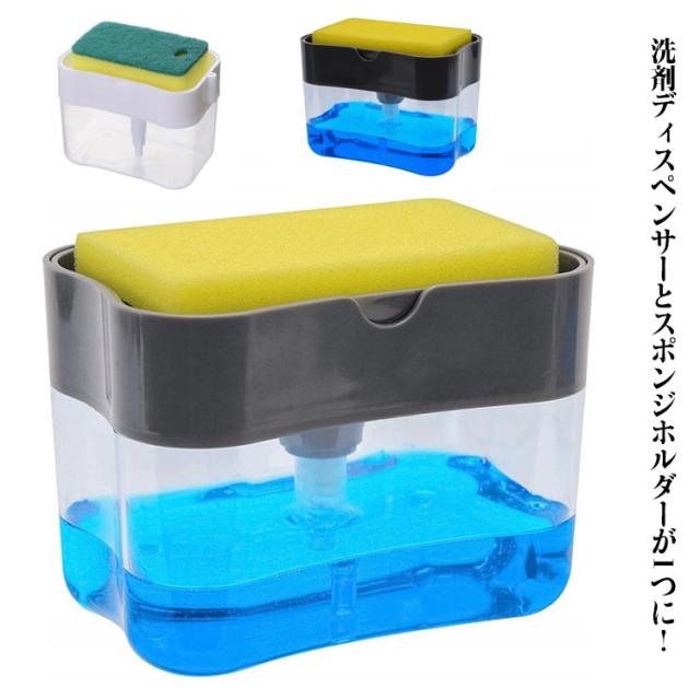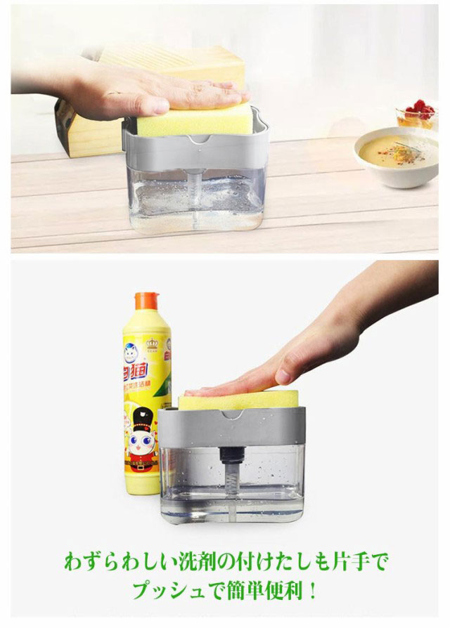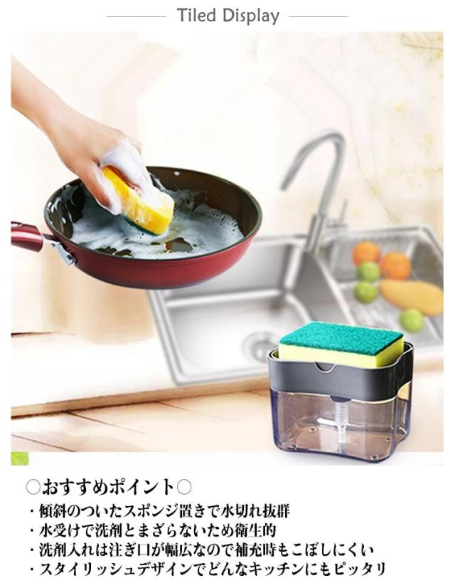 | 洗剤ディスペンサーとスポンジホルダーが1つに! わずらわしい洗剤の付けたしも片手でプッシュで簡単便利! 〇おすすめポイント〇 ・傾斜のついたスポンジ置きで水切れ抜群 ・水受けで洗剤とまざらないため衛生的 ・洗剤入れは注ぎ口が幅広なので補充時もこぼしにくい ・スタイリッシュデザインでどんなキッチンにもピッタリ 毎日のことだからすこしでもラクにハッピーに! | |