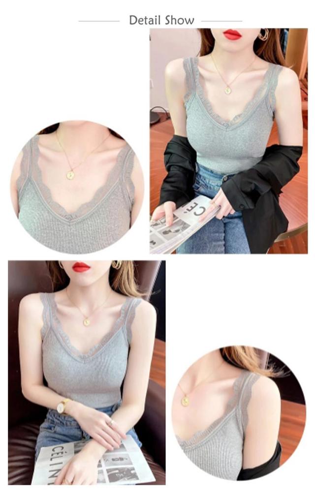 | フェミニンなリブ編みが体に優しくフィットし心地よく包んでくれる。レールがデコルテラインをキレイに魅せてくれ、さらにコーディネートを可愛く仕上げます。ブラ紐が見えにくいレースの肩紐がデイリーでは使いやすくて◎ ※スタッフ身長160cm/体重50kg普通体系が着用した感じはMサイズ位でしたが、伸縮性があるのでLサイズの方でもお気に召してもらえる可愛いキャミソールです。 | |