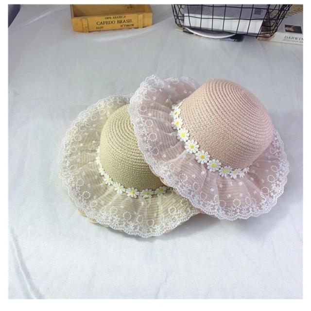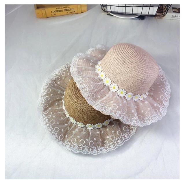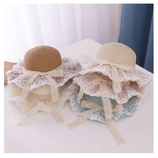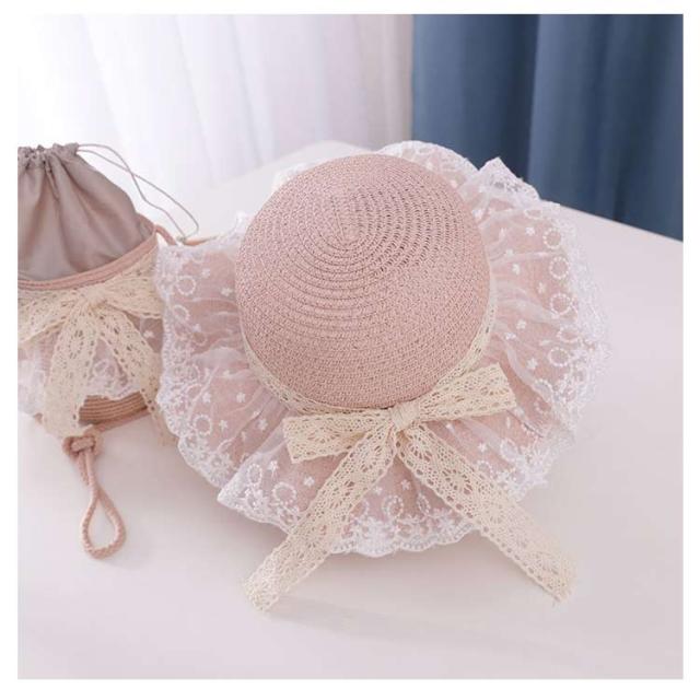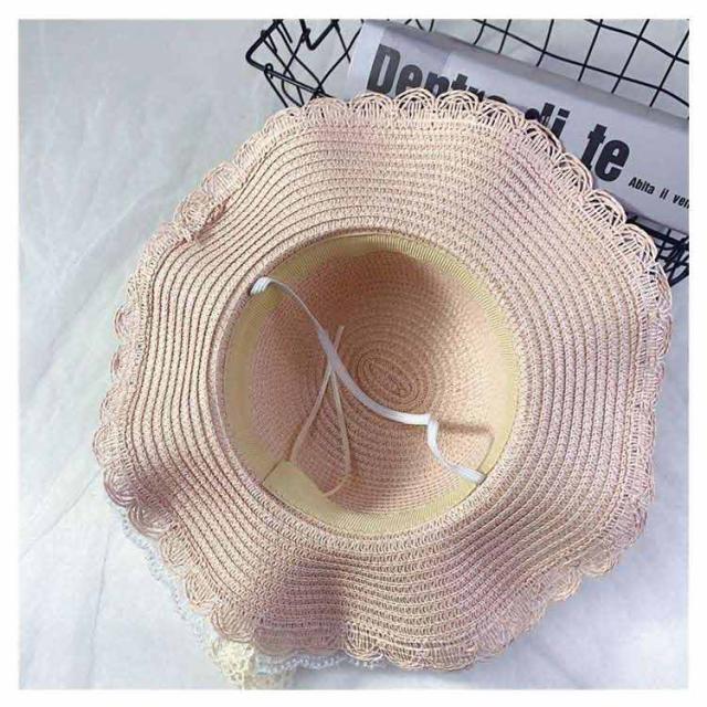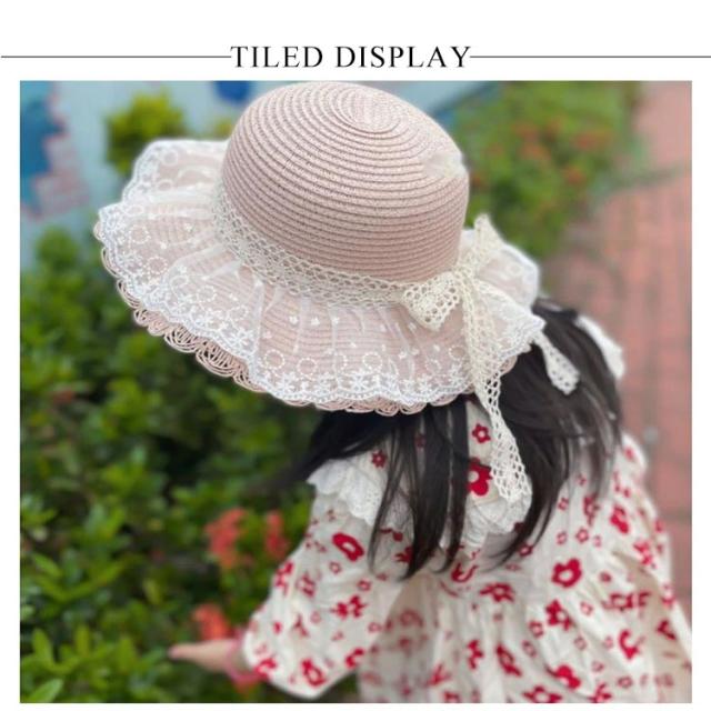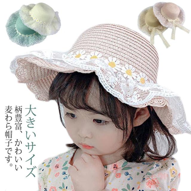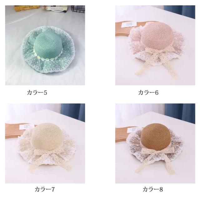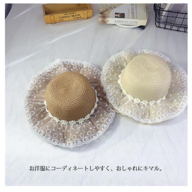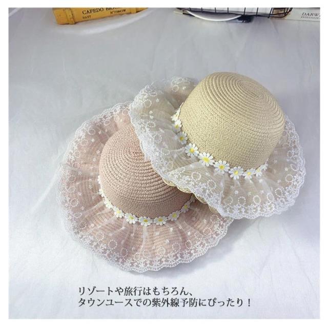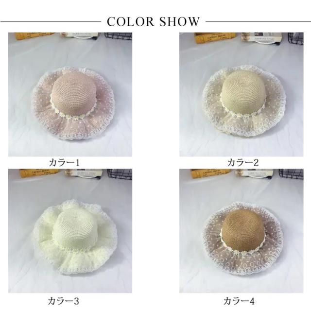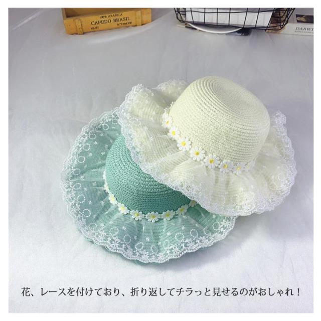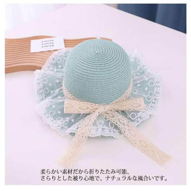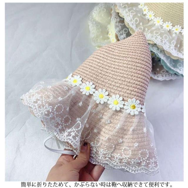 チュールレース 麦わら帽子 帽子 キッズ ストローハット 折りたたみ 麦わら帽 つば広 ハット 大きいサイズ 帽子 UVハット 夏 小顔効果 日よけ 3歳 4歳 5歳 8歳 9歳 10歳