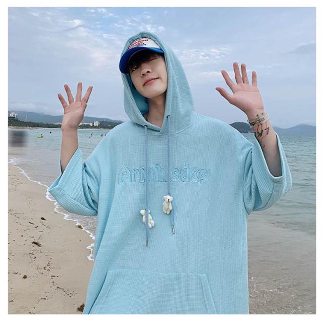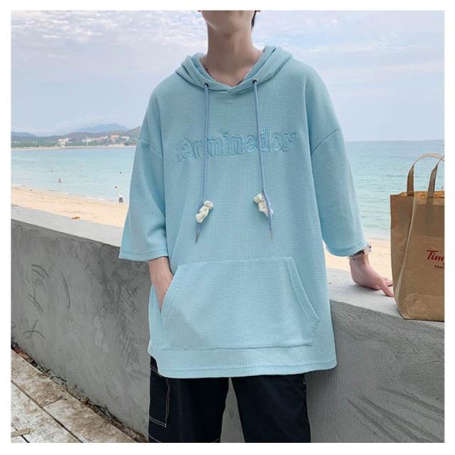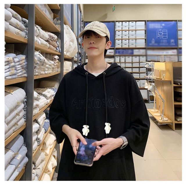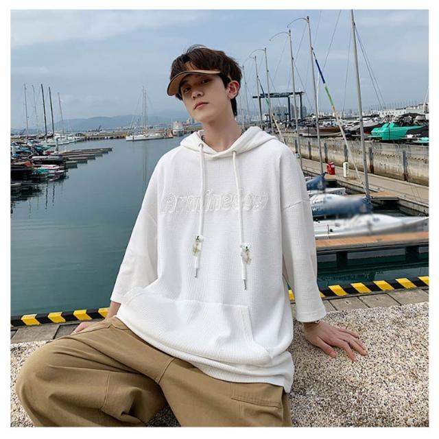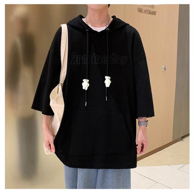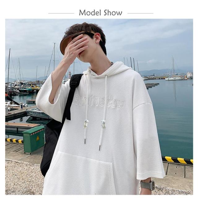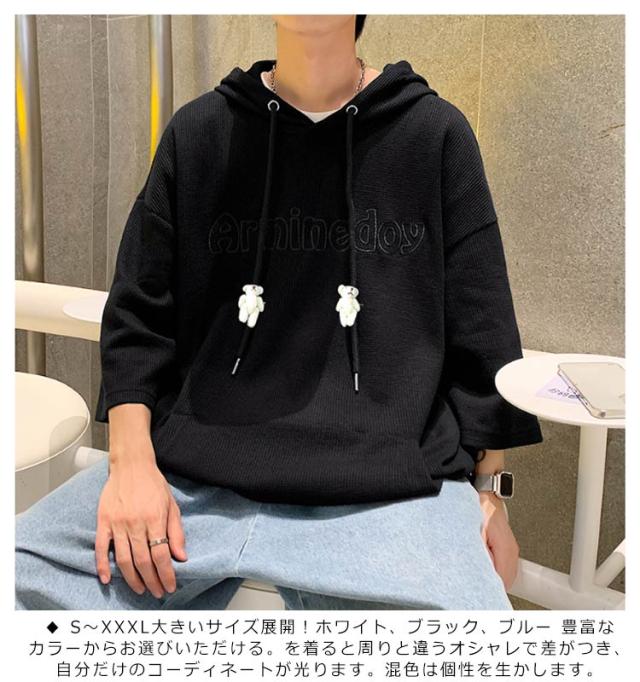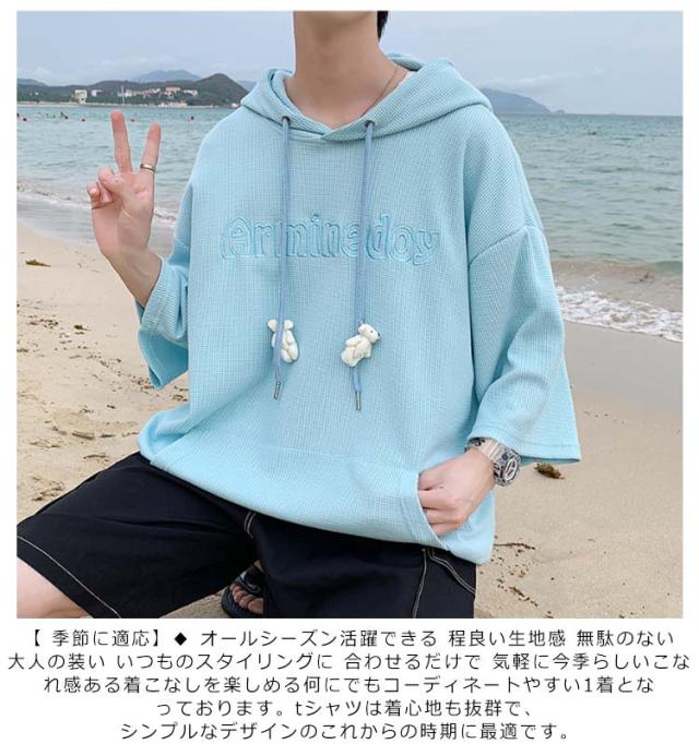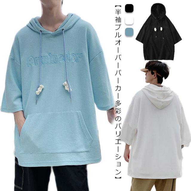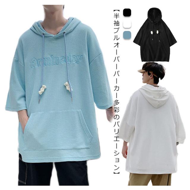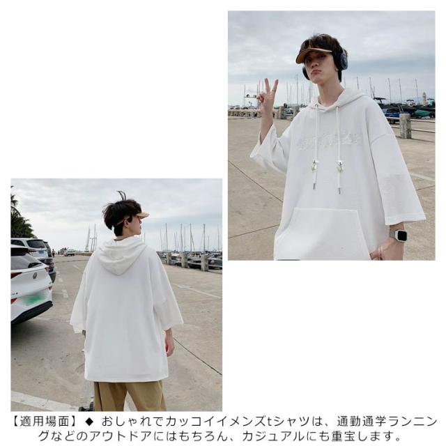プルオーバ メンズ 送料無料 春 ルームウェア 秋 ロング丈 フード付き tシャツ 刺繍 無地 ポケット付き カットソー 韓国 夏 半袖 ミドル丈 ビッグシルエット トップス シンプル 大きサイズ 部屋着 パーカー
