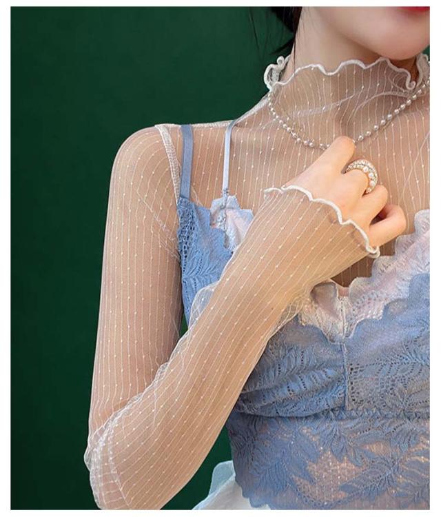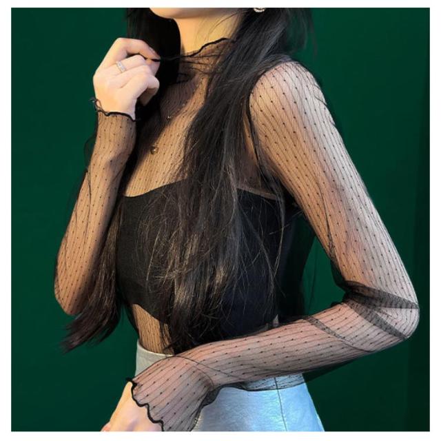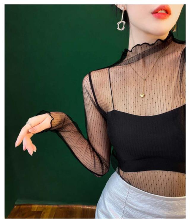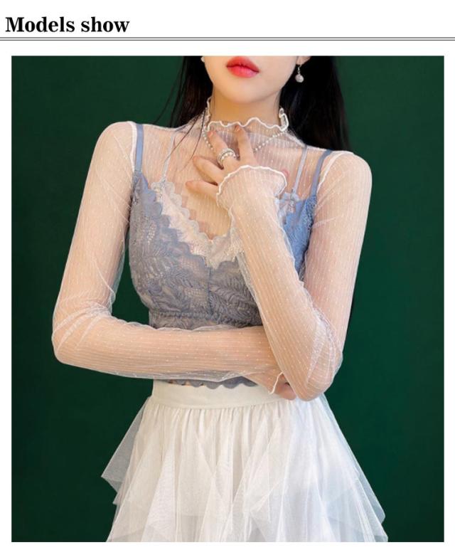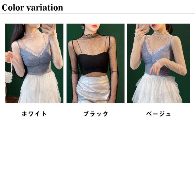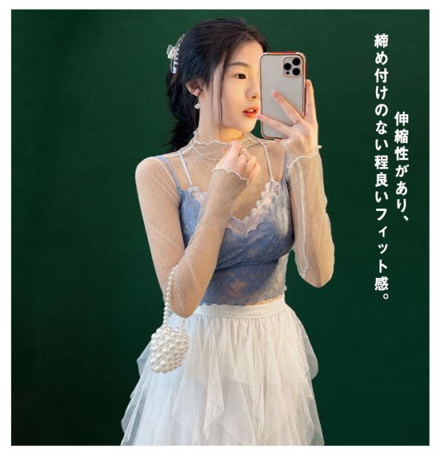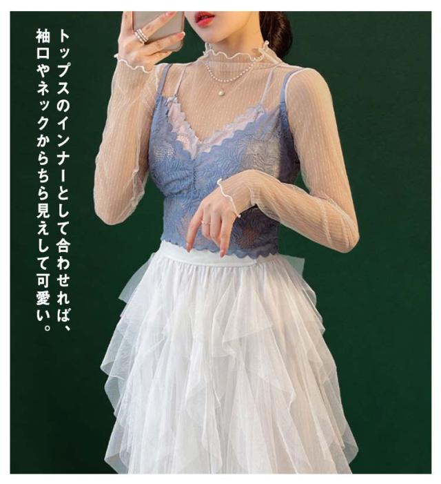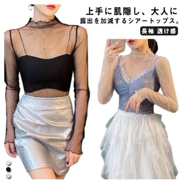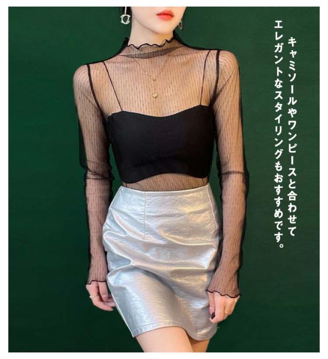 チュール 送料無料 シースルー インナー 長袖 トップス セクシー インナーシャツ 透け感 重ね着 メロウフリル 薄手 タートルネック カットソー ハイネック 無地 レイヤード 送料無料 きれいめ シンプル カジュアル 大人 レディース