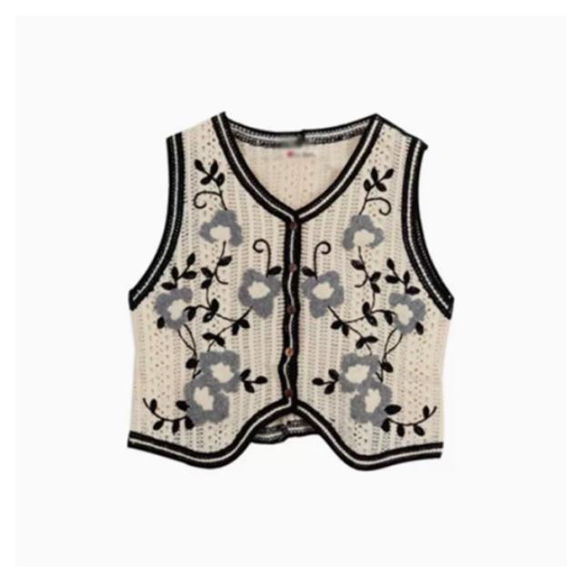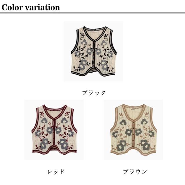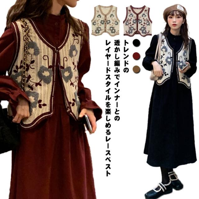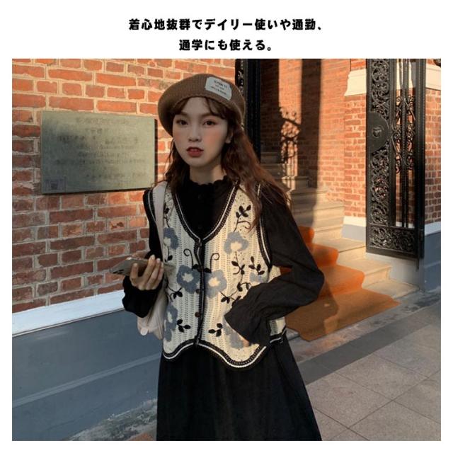 春 レイヤード 送料無料 羽織り サマーニット レディース 刺繍 花柄 ジレ ニットベスト ベスト 前開きベスト 透かし編み トップス ノースリーブ Vネック ゆったり プルオーバー ショート丈 重ね着 通学 かわいい お洒落 カジュアル 通勤 夏