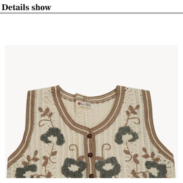| ロンTやシャツ、重ね着するだけで一気にオシャレになる今季注目アイテムのクロシェ編みベスト。 フロントにちりばめられたフラワーモチーフがかわいいポイント! ニットでも透かし編みにしているため、暑苦しくなく、涼し気な見た目です。 インナートップス次第で違い表情を演出する可愛いitem。 | |