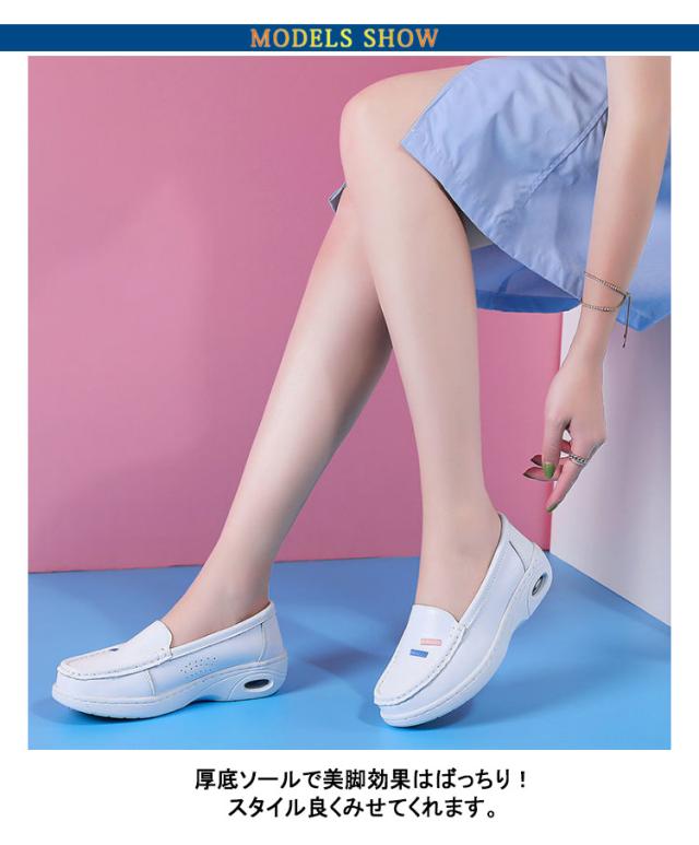 | 長時間の立ち仕事でも疲れにくいナースシューズです。 スリッポンなので脱ぎ履きがより簡単に。どんな足の動きにもぴったりフィット。 靴底の軽量化でさらに弾むように動け、しっかりした安定感で履き心地も抜群。 細見えなのに内部は幅広設計で圧迫なく足指が動かせラクラク履けます! 厚底ソールで美脚効果はばっちり!スタイル良くみせてくれます。 | |