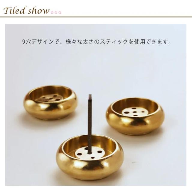 | コンパクトなので小型の仏壇にもぴったりな香炉です。 9穴デザインで、様々な太さのスティックを使用できます。 金属製なので、火事の心配もないのがいいです。 お香のテーブルや室内装飾として使用できます。 | |