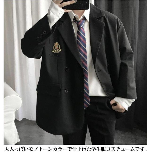 スクール 送料無料 ブレザー 学生服 スーツ 制服 上下セット 男子用ジャケット コスプレ 高校制服 秋冬 卒業式 上着 中学生 入学式 4点セット 男子高生 黒 メンズ スクール コスチューム衣装 通学 発表会 ブラック 大きめ 高校生