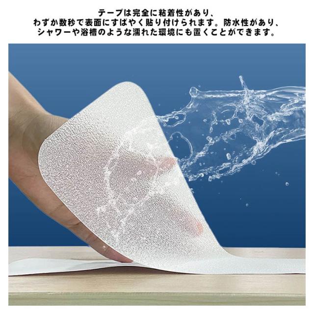 | 【安全な素材】環境にも人体にもPVCを使用した透明な滑り止め粘着テープで、グリップ力と耐久性が向上しています。有害物質なしため、子供、高齢者、犬を安全に保ちます。 すべり止め顆粒が入っている、滑りを抑え、安心してご使用頂けます。 【自由にカット】タイル、大理石、その他の滑らかな素材および気泡や隙間がない素材に適用です。使いたい場所にあわせて、はさみで自由に裁断ことができます。 【簡単な作業】テープは完全に粘着性があり、わずか数秒で表面にすばやく貼り付けられます。防水性があり、シャワーや浴槽のような濡れた環境にも置くことができます。 【広い用途】駐車場、ホテル、病院、学校、駅、オフィスビル、階段、トイレ、浴室、などには大活躍。滑りやすくなった階段・フロアなどのスリップ事故の防止にお役立てください。 | |