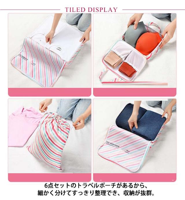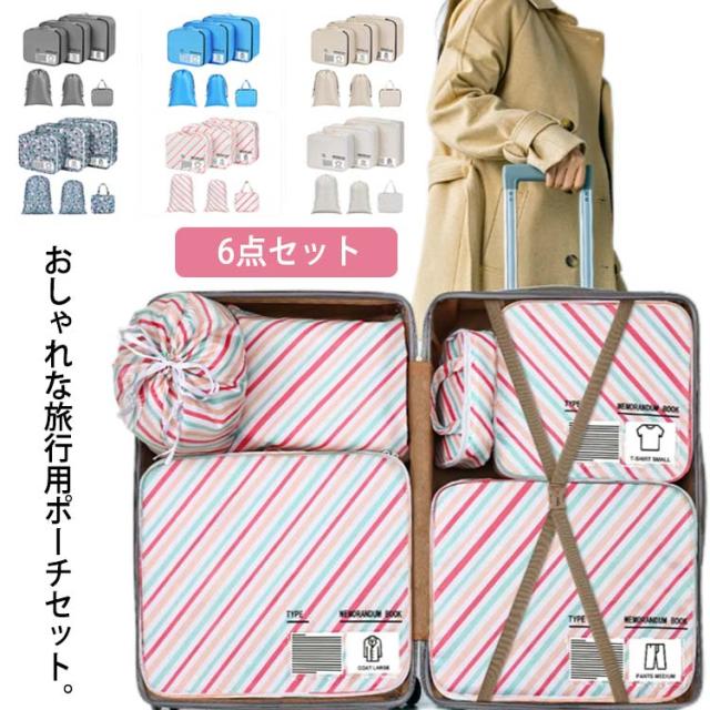 花柄 トラベルポーチ ボーダー 旅行用ポーチ バッグ 6点セット おしゃれ トラベルポーチ 出張 衣類収納袋 旅行ポーチ 化粧ポーチ付き セット 便利グッズ 靴用 下着収納 下着 シューズ収納 旅行用便利グッズ 整理