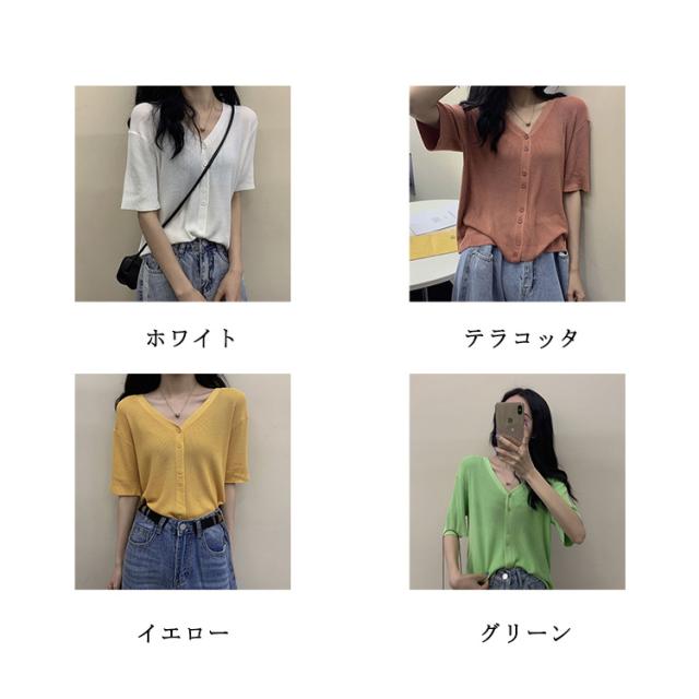 夏用 半袖 カーディガン レディース カーデガン 前開き 夏 カーデ トップス 半袖 学生 きれいめ オフィス サマーカーディガン 薄手 Vネック 通勤