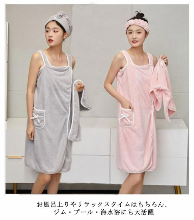 ラップタオル 夏用 お風呂上がり バスローブ 海水浴 吸水 大人用 マイクロファイバー ポケットあり レディース ふわふわ 女子 便利 かわいい ルームウェア パジャマ ワンピースバスラップ