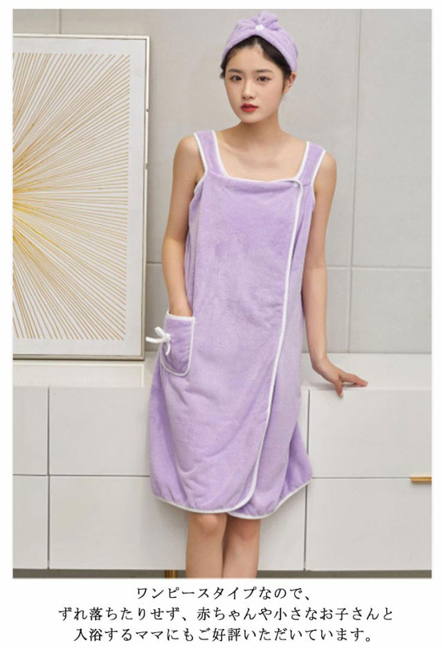| お風呂上りはこれに決まり!! 大人気バスラップが登場★ お風呂上がりにさっとかぶって、ほてりを冷ましながらボディケアもらくちん♪ 海やプール、ジムでの着替えに便利なので、季節を問わずお使いいただける大人気商品です! ワンピースタイプなので、ずれ落ちたりせず、赤ちゃんや小さなお子さんと入浴するママにもご好評いただいています。 豊富なカラー展開なのでお気に入りのカラーを見つけてください♪ | |