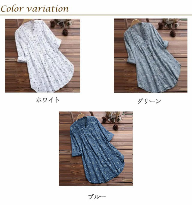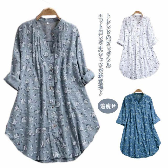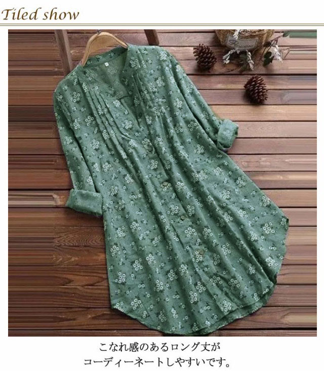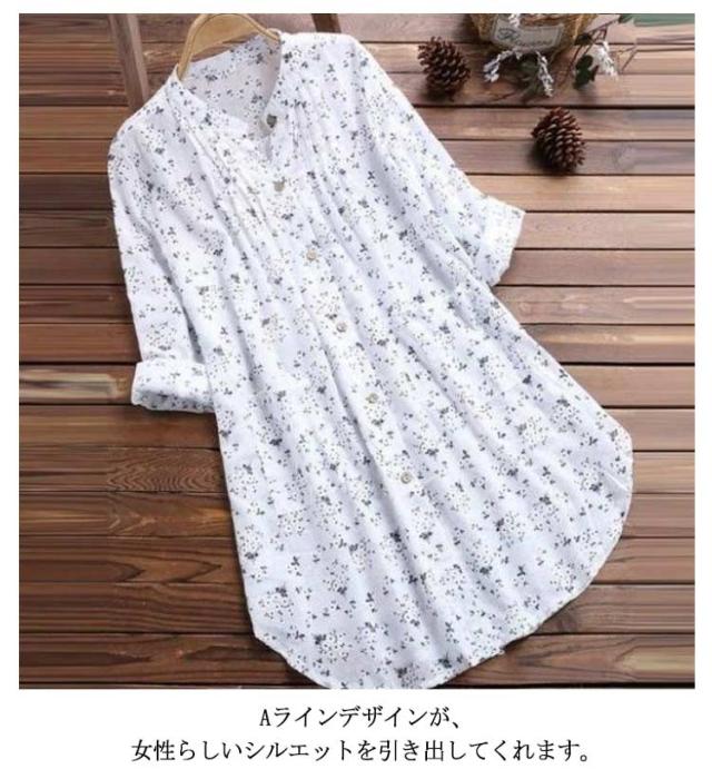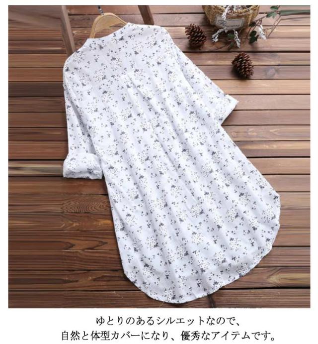 シャツ 前開き 綿麻混 レディース チュニック ゆったり Aライン 送料無料 花柄 長袖 ロングシャツ ブラウス シャツブラウス トップス ライトアウター 着痩せ 可愛い 大きいサイズ 春 夏 秋 冬 シンプル ワンピース