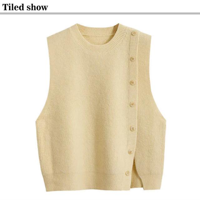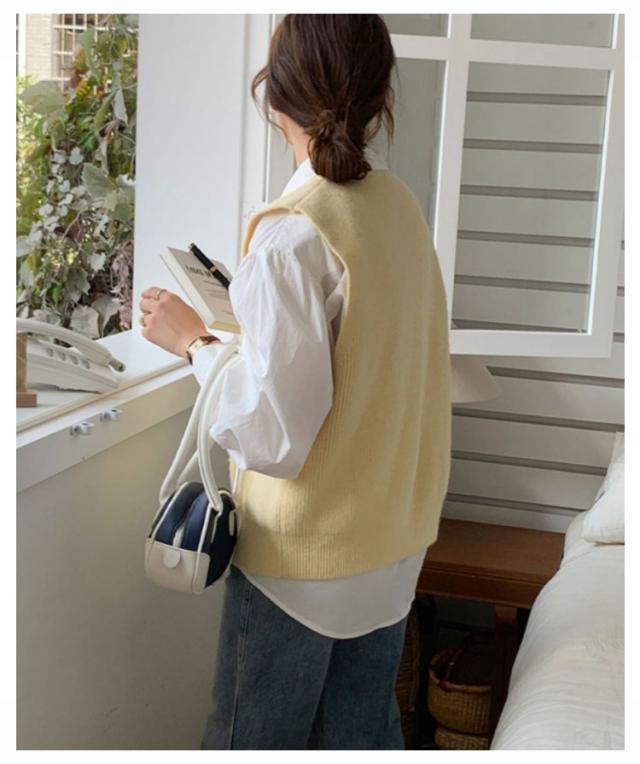 ベストレディース レディース 丸首 春秋 無地 ニットトップス ノースリーブ セーター ノースリープニットベスト レイヤード 体型カバー 通勤 着痩せ シンプル ニットベスト