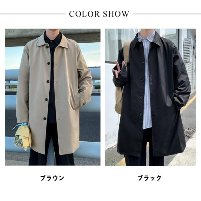 トレンチコート クラシックコート メンズ ロングコート ロング丈 秋 アウター コート メンズコート ステンカラーコート ステンカラーコート スプリングコート 通勤 無地 春 キレイめ 黒 ブラック カジュアル