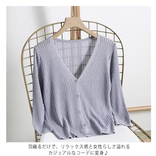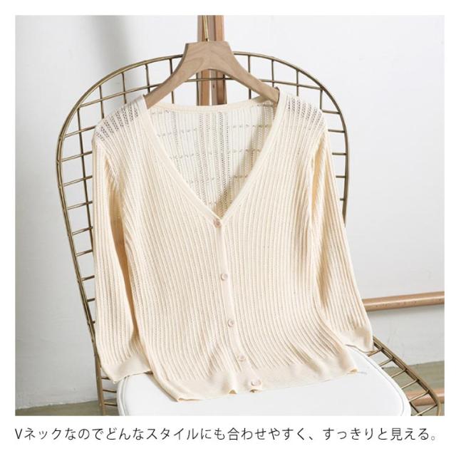ニットカーディガン UV 春夏 レディース サマーカーディガン ゆったり カーディガン サマーニット 羽織り ボレロ ひんやり 薄手 ニットトップス 長袖 Vネック 前開き ニットカーデ ストレッチ 冷感 OL 無地 お洒落 カジュアル 重ね着 上品 冷房対策 日焼け防止 オフィス