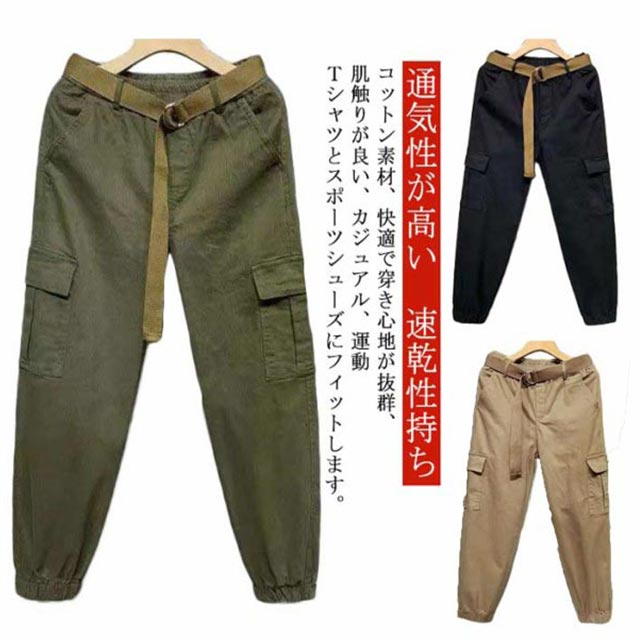 スポーツ カーゴパンツ 韓国 ゆったり ロングパンツ ポケット ワークパンツ ミリタリーパンツ 作業着 ストレートパンツ 軍パン カジュアルパンツ ベルト付き ストリート ダンス 衣装 原宿 レディース