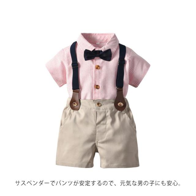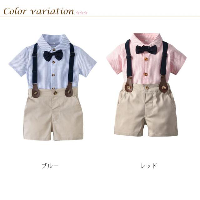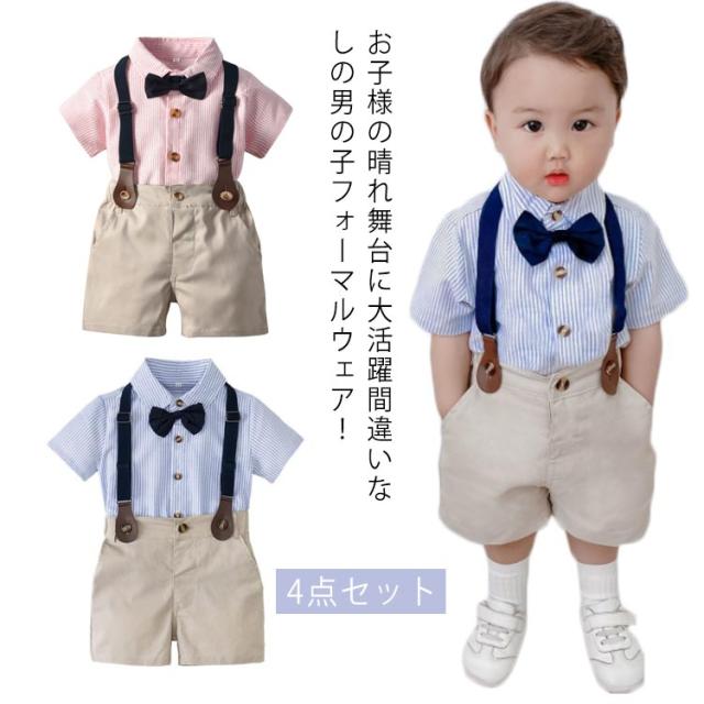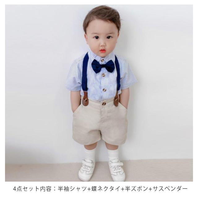4点セット 男の子 子供服 サロペット ベビー服 半袖 春夏秋 子供服 入学式 フォーマル 卒業式 スーツセット フォーマル 上下セット ストライブ柄 ワイシャツ キッズスーツ 誕生日 初節句 結婚式 フォーマルスーツ