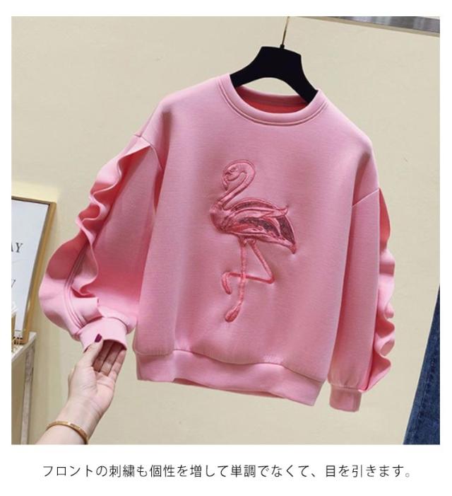 トップス 刺繍パーカー 子供服 フリル袖 パーカー 刺繍 可愛い ラウンドネック トレーナー 110−160cm!女の子