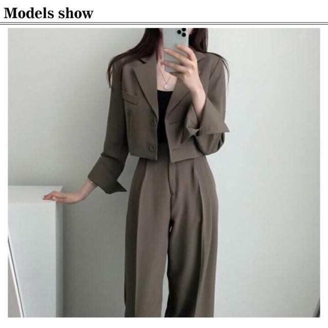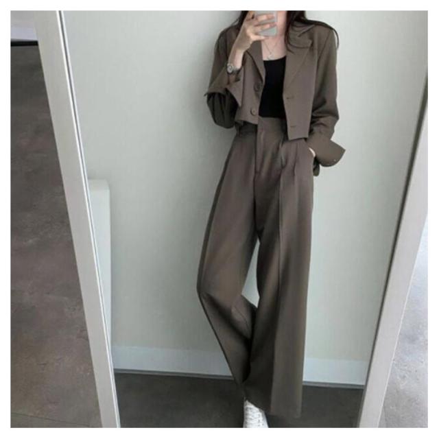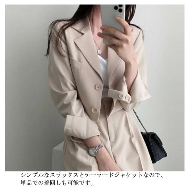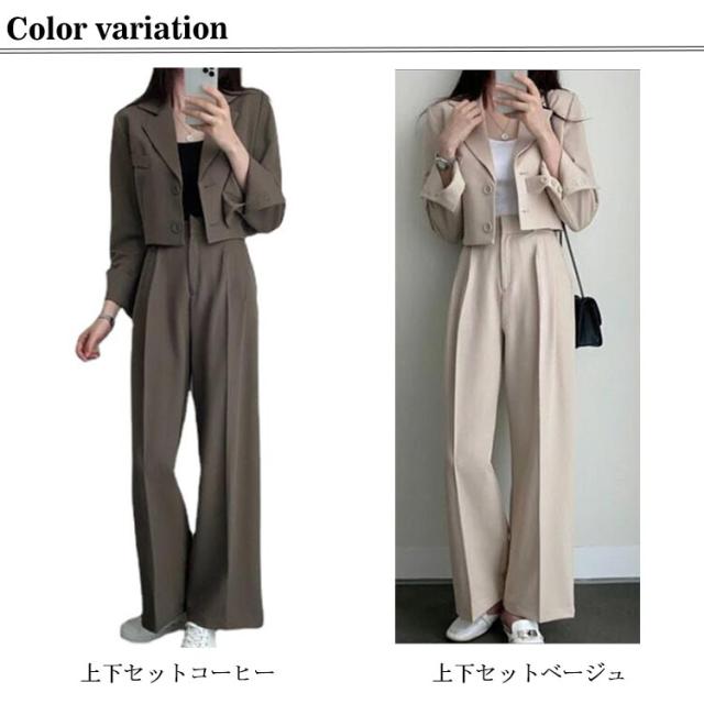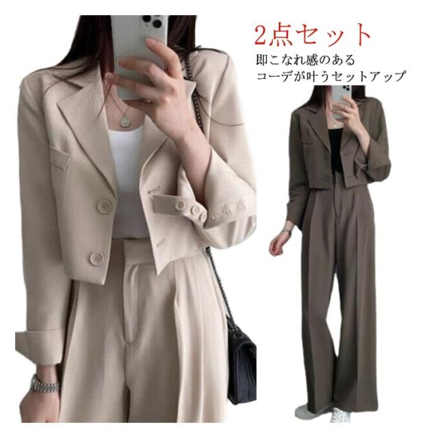長袖 セットアップ ストレートパンツ 2点セット テーラードジャケット テーラード ショートジャケット 韓国ファッション ワイドパンツ スラックス ストレート ダットパンツ カジュアル セットアップ