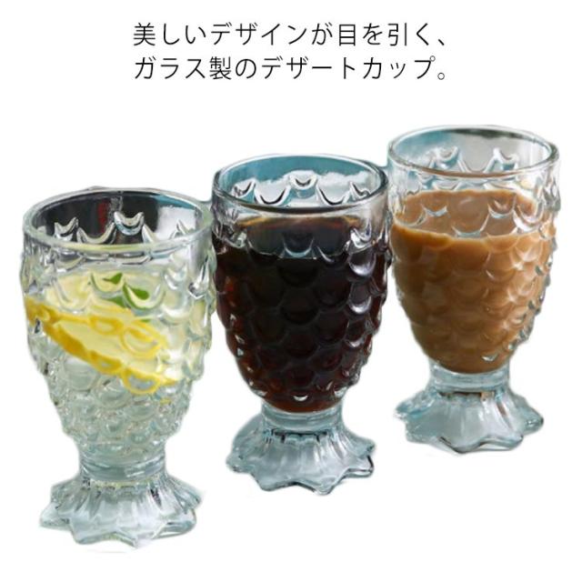 | 美しいデザインが目を引く、ガラス製のデザートカップ。 ヨーグルトボウルや、アイスクリームカップとしてはもちろん、夏にはかき氷や、フルーツ、あんみつなど、デザートボウルとして活躍してくれます。 その他、お茶や、ワインなどにもお使いいただけますよ。 | |