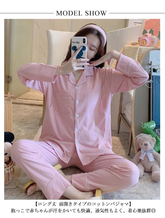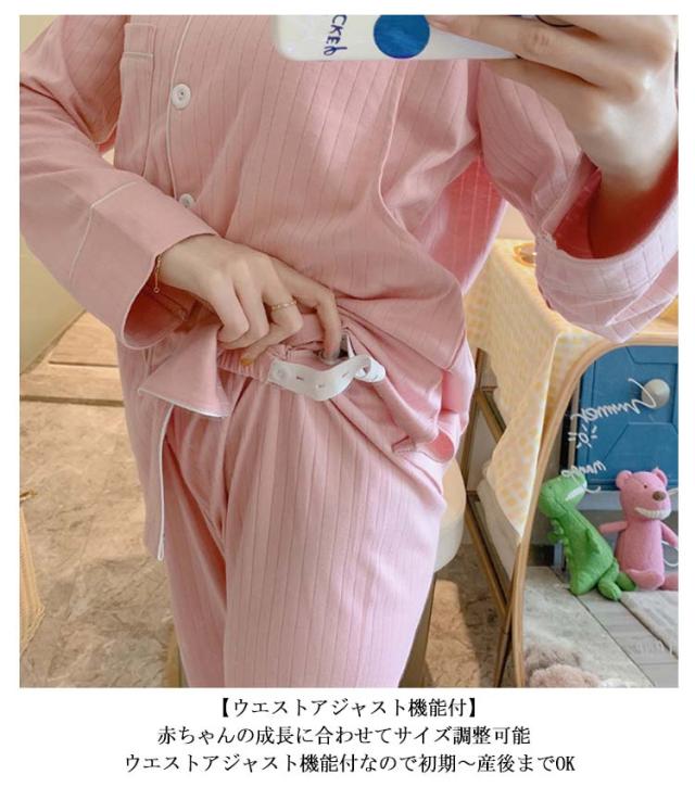 かわいい パジャマ 長袖 レディース 授乳パジャマ 大きいサイズ 産後 前開き ピンク おしゃれ 授乳口 春 マタニティ ウエスト調整付き ルームウェア ネイビー 紺 産前 秋冬 楽 妊婦服 入院 臨月 夏 秋 冬 春夏 楽ちん