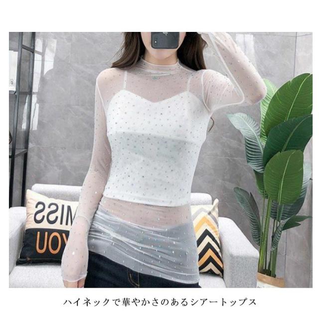 キラキラ シースルー シアートップス トップス カットソー 透け ハイネック 大人 XL レーストップス L 重ね着 S M レイヤードトップス 3XL 2XL レディース
