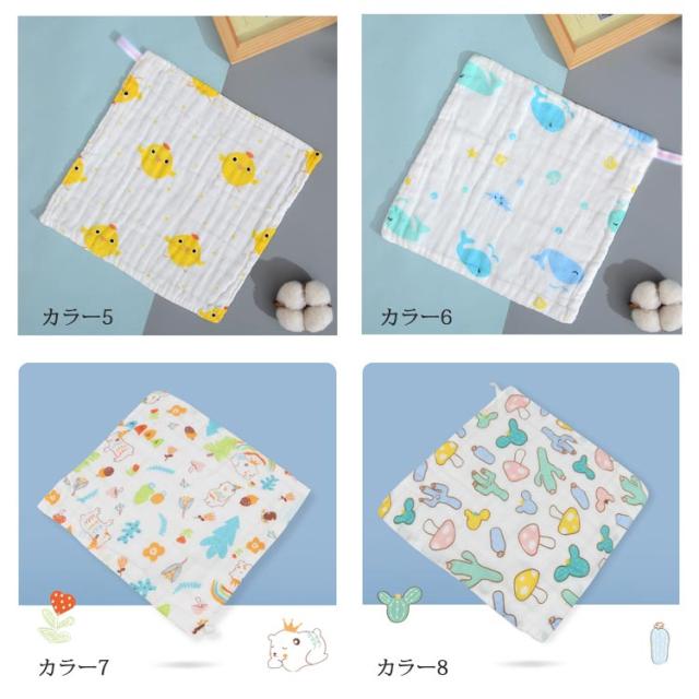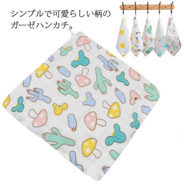 フェイスタオル 柔らかく キッズ 6重ガーゼ 送料無料 ガーゼハンカチ 3枚セット ループ付き はんかち ハンドタオル 可愛い ベビー 赤ちゃん 綿100% 25×25cm コットンタオル ガーゼタオル 通気性 吸水 かわいい絵柄 はんかち 女の子 男の子 種類豊富