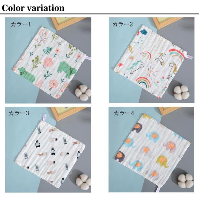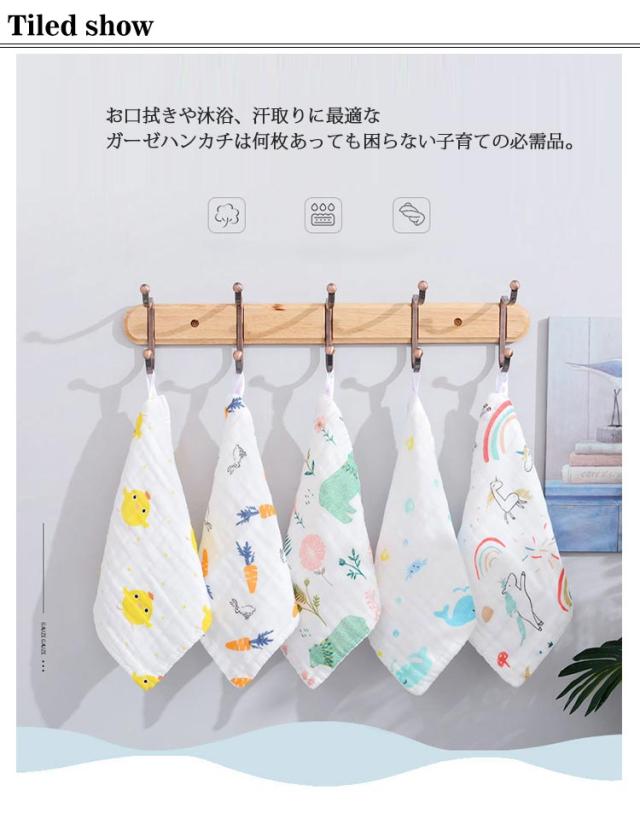 | お得な3枚セット◎綿100%の6重ガーゼで子供の肌にやさしいハンカチです。 吸水性に優れたお肌に優しいガーゼハンカチ。 無蛍光の100%天然素材、安心して使用ください。 程よい薄手の生地感だから汗などの水分をさっと吸収。 ループ付きなので、持ち歩くときもフックなどにかけてサッと使用できます。 周りと差が付く可愛い柄付きだと、テンションも上がりますね! | |