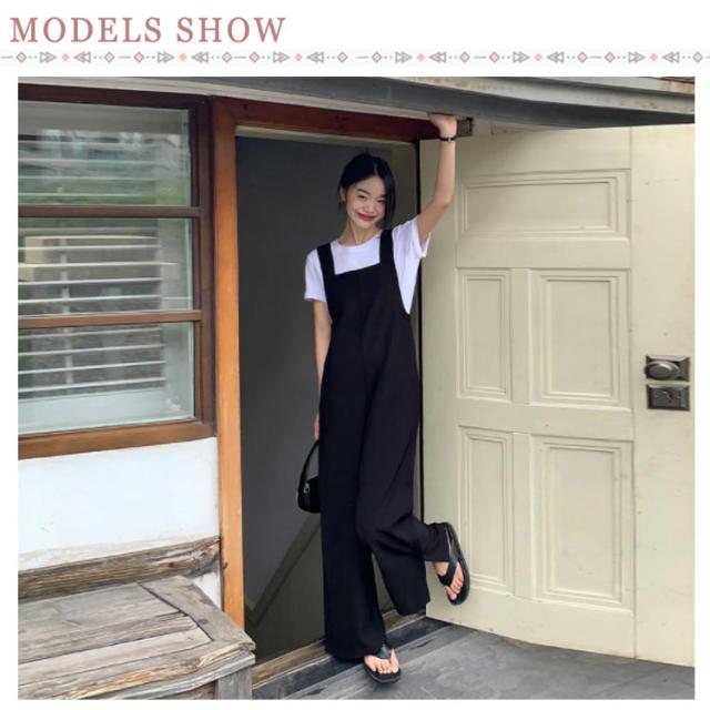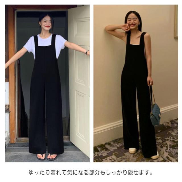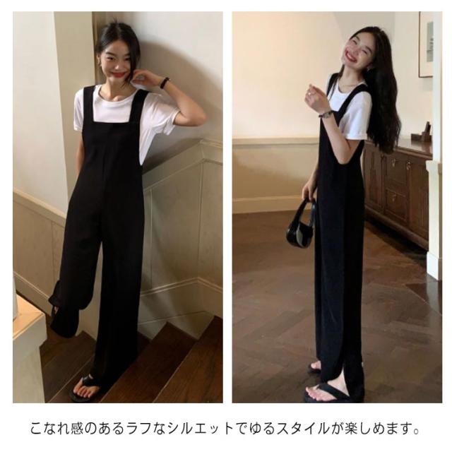 スリット サロペット オールインワン レデイース ストレート オーバオール ワイドパンツ ゆったり 体型カバー おしゃれ カジュアル ブラック オールシーズン 着痩せ 無地 30代 ボトムス シンプル 通勤 20代 黒 40代 美脚