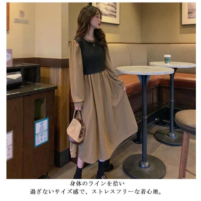 ロングワンピース カジュアル 送料無料 レイヤード 可愛い マキシ丈 可愛い 韓国 ファッション 大きいサイズ マキシワンピース 体型カバー かわいい レディース おしゃれ ワンピース