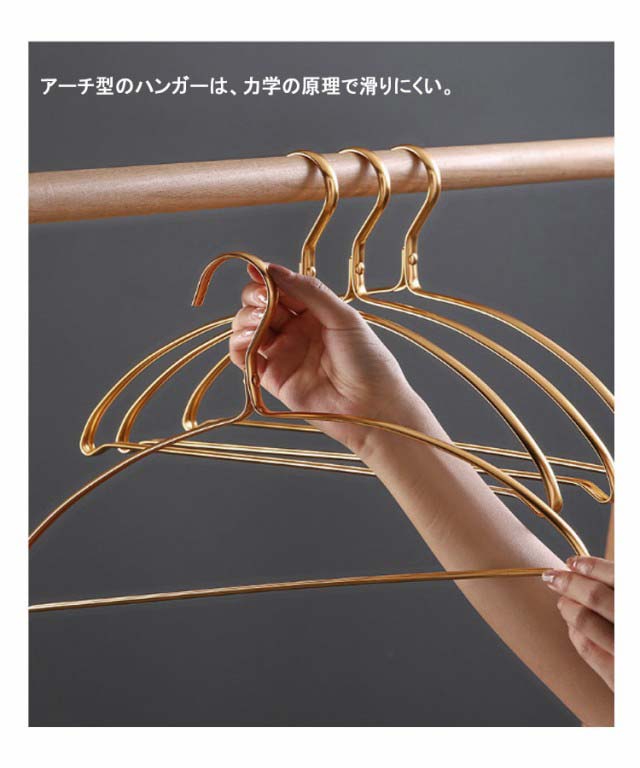 アルミ すべらない 滑らない 収納 型崩れしない 滑り止め 金属 ゴールド 物干しハンガー 20本セット!跡がつかないハンガー アーチハンガー 洗濯ハンガー 衣類 変形にくい 物干しハンガー 曲がらない 肩