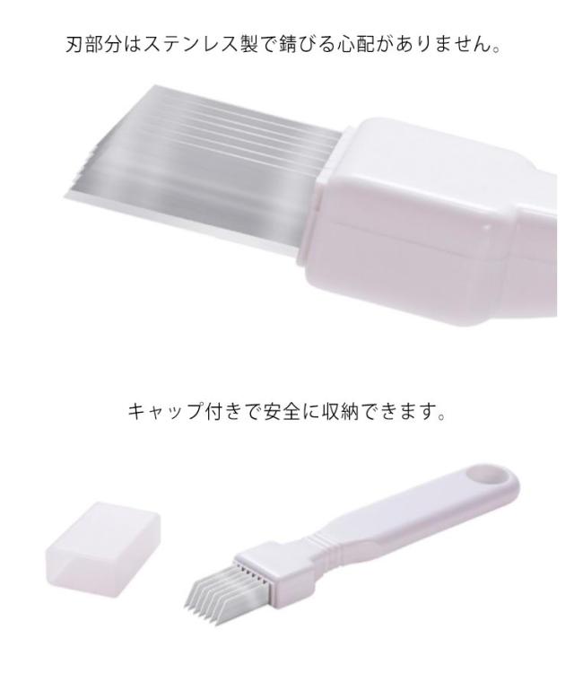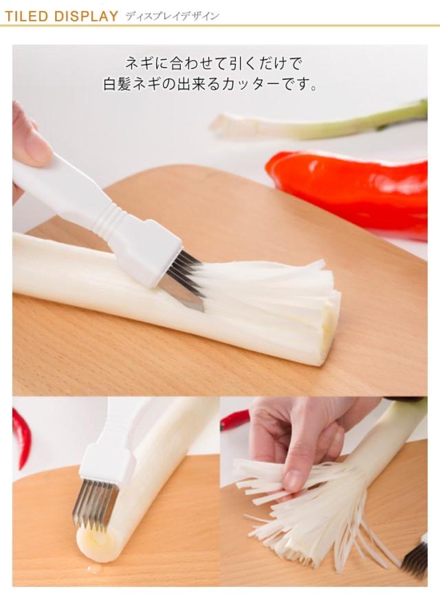 | 白髪ネギが手軽に作れるネギカッター ネギに合わせて引くだけで白髪ネギの出来るカッターです。 刃部分はステンレス製で錆びる心配がありません。 キャップ付きで安全に収納できます。 握りやすい形で、料理中でもグリップできて滑りにくい! | |