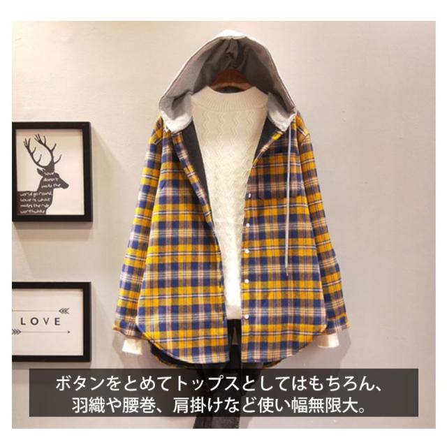 シャツコート フード付きシャツ ネルシャツ シャツジャケット アウター ロングシャツ 秋服 シャツパーカー オーバーサイズ 秋服 秋物 ゆったり 体型カバー チェック柄 レディース