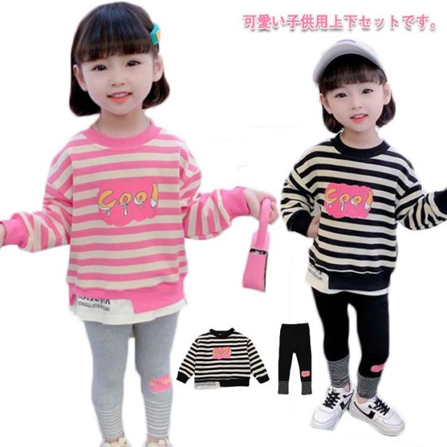 トレーナー 子供服 セットアップ 上下セット 子ども ジュニア ジャージ スウェット 春秋 レギンス 2点セット 長袖 長袖Tシャツ 長ズボン 女の子 ボーダー柄 スポーツウェア ルームウェア かわいい