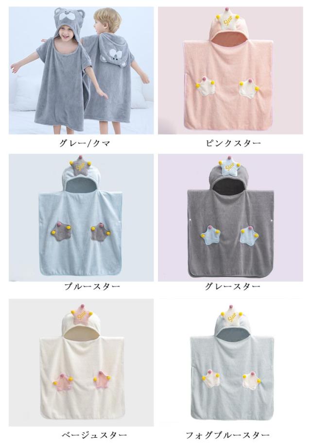 アニマル柄 耳付きフード 星柄 吸水 フード付き 女の子 プール マント お風呂 両脇スナップボタン 男の子 海水浴 キッズ ビーチ 水泳 着替え 湯上り 可愛い かわいい ポンチョ風バスローブ