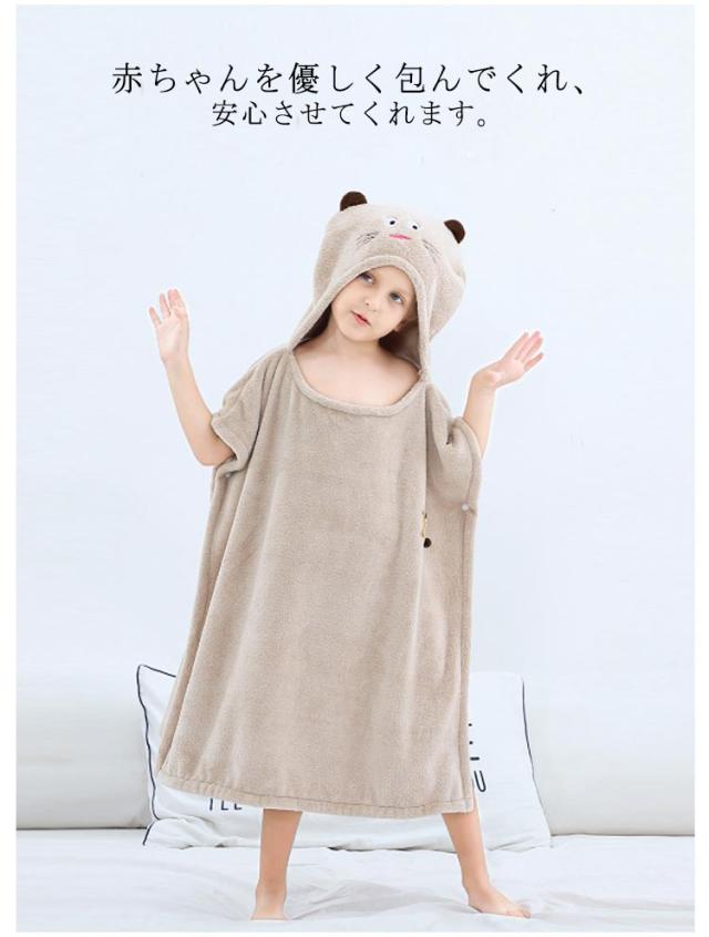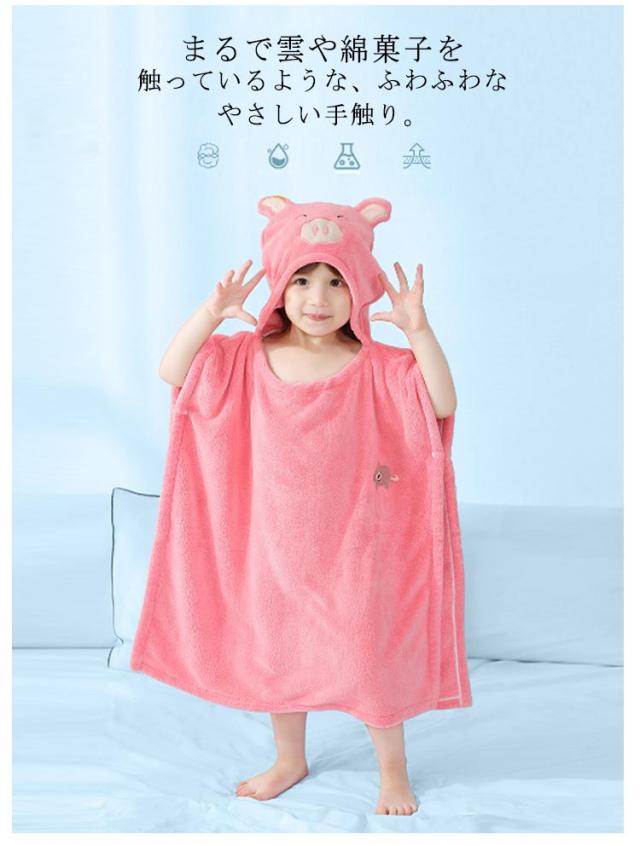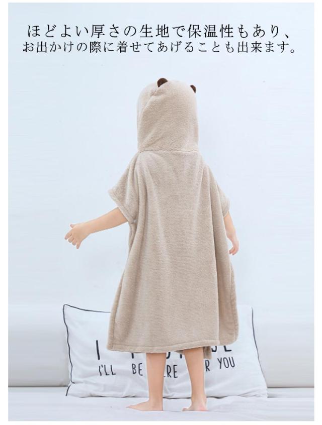 | 可愛いデザインのキッズバスローブです。 耳がフードについており、とても愛らしい見た目です。 まるで雲や綿菓子を触っているような、ふわふわなやさしい手触り。 赤ちゃんを優しく包んでくれ、安心させてくれます。 ほどよい厚さの生地で保温性もあり、お出かけの際に着せてあげることも出来ます。 体や髪の毛の水分をぐんぐん吸い取ってくれ、着替えに最適◎ サイドのボタンでポンチョのようにも着せる事ができ、ちょっと成長されたお子様でもお風呂上がりに着せたり、部屋着としても着られます。 水泳やプール、海水浴・サーフィン・マリンスポーツ、温泉 アウトドアシーンにもおススメ◎ | |