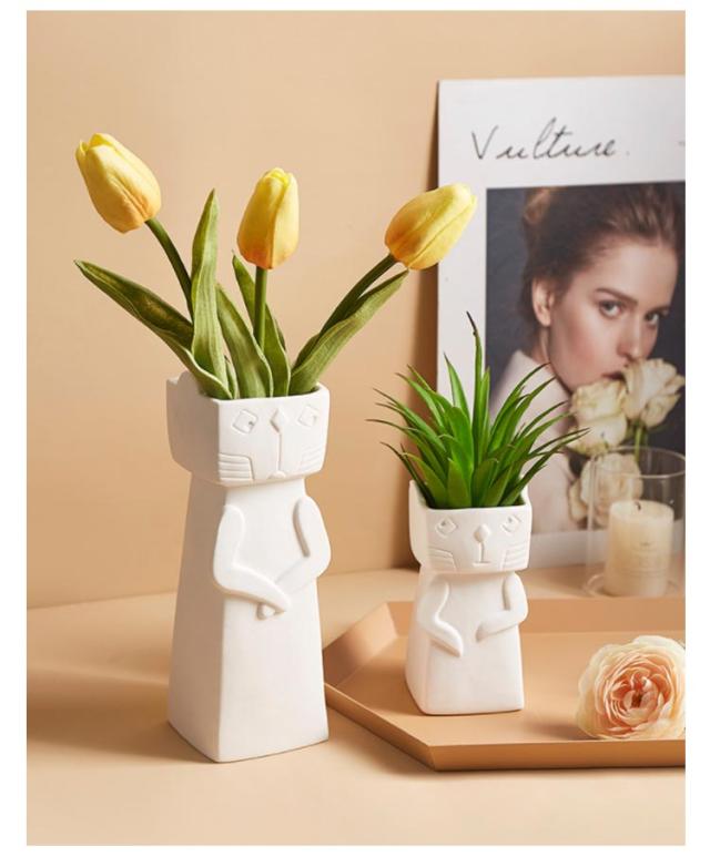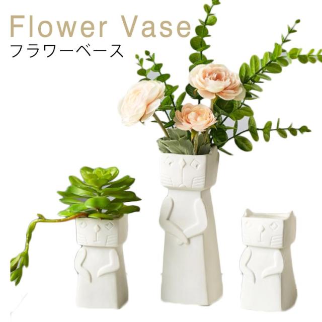 生け花 オーナメント おしゃれ ネコ 和風 フラワーベース 猫 陶器 モダン 北欧 花瓶 フラワーベース オブジェ 花瓶 花立て 花器 ブーケ かびん 陶器 花びん 一輪挿し フェイク 花 ドライフラワー 陶器 グリーン 花入れ 雑貨 置き物 フラワーポット インテリア 花瓶