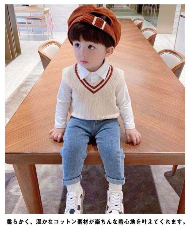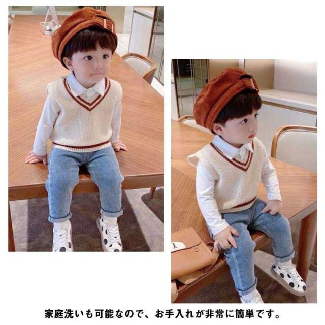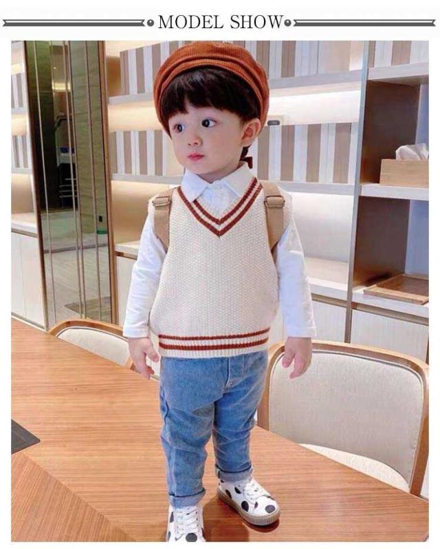 ベスト 通学 ニット キッズ vネック 赤ちゃん ベビー 冬 セーター ベスト 子供 ニットベスト 秋 男の子 スクールニット 綿 ライン入り 無地 女の子 春 夏 ベスト キッズ 韓国 スクールウェア インナー シンプル かわいい 通園 80 90 100 110 120 送料無料
