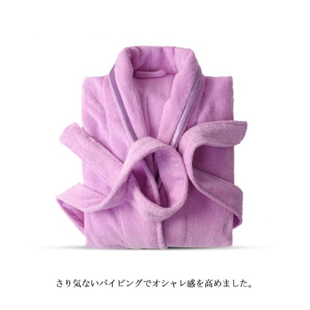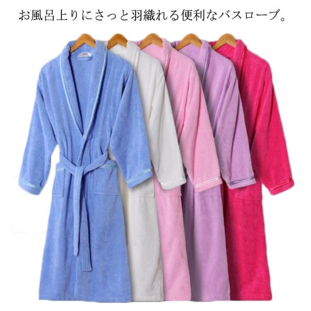 ガウン ミモレ丈 タオル生地 吸水 綿 メンズ レディース 白 高級ホテル仕様 厚手 速乾 バスローブ お風呂上り 長袖 ルームウェア 部屋着 春夏秋冬 保温 冷房対策 パイピンク ホワイト バスタオル