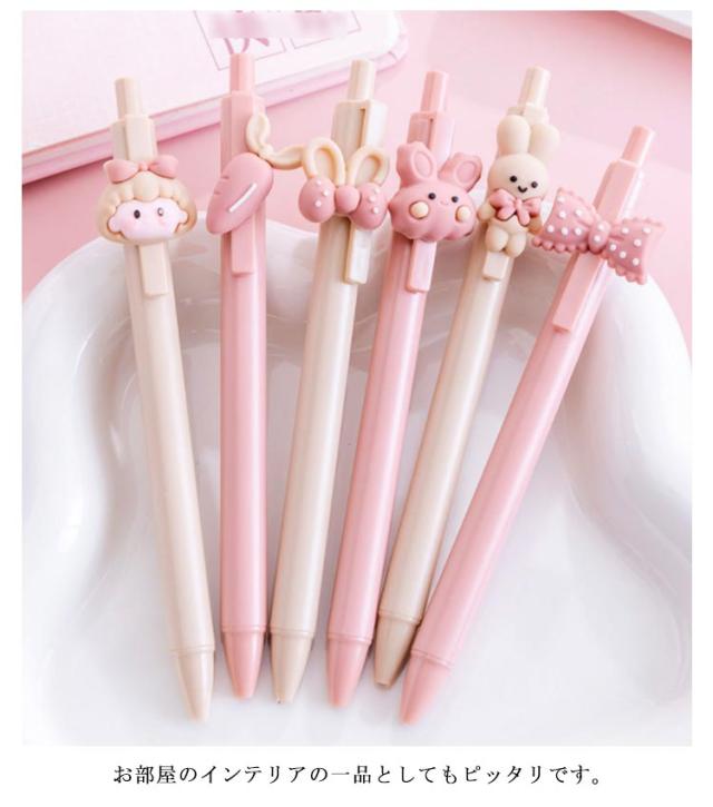 | かわいいデザインのボールペン6本セットです。 クリップ部分にキャラクターがついたボールペンです。 それぞれ表情が違うキャラクターはお子様やご友人への贈り物としても喜ばれること間違いなし! お部屋のインテリアの一品としてもピッタリです。 ボールペンインクは全てブラックとなっております。 | |